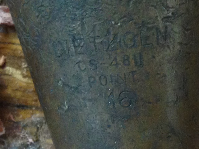 I found a wide assortment of items while out this past week. Thought I would share a few of them with you all. First up I found this nice old wooden hand plane. I haven't working on any research for it yet and I am having a bit of trouble making out all of the letters on the iron and the plane. The letters on the plane iron are also a little hard at this time to make out. Of course your eyes may be better than mine. Then I got this nice Brass Dietzgen Plumb Bob. You had to look pretty hard to find the name and information. Then I ran into a couple of items that just made there way home with us. This nice wicker rocker sits pretty nice on the deck. And I for some unknown reason just liked this old metal adjustable stool. And I have another use for these old adjustable window bars but that will be a topic later. This Patriot Picking is just way too much fun!