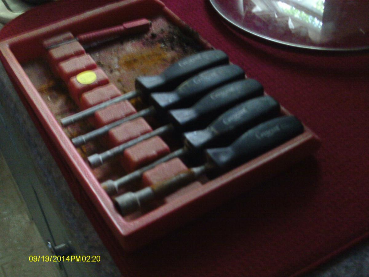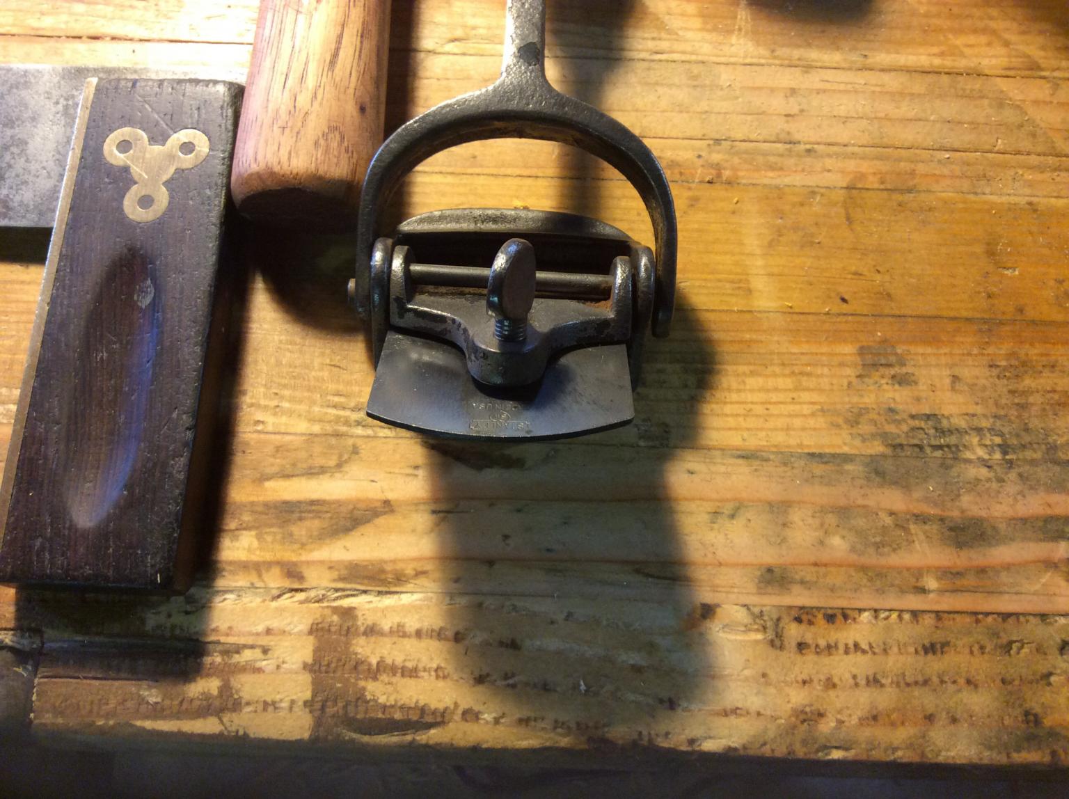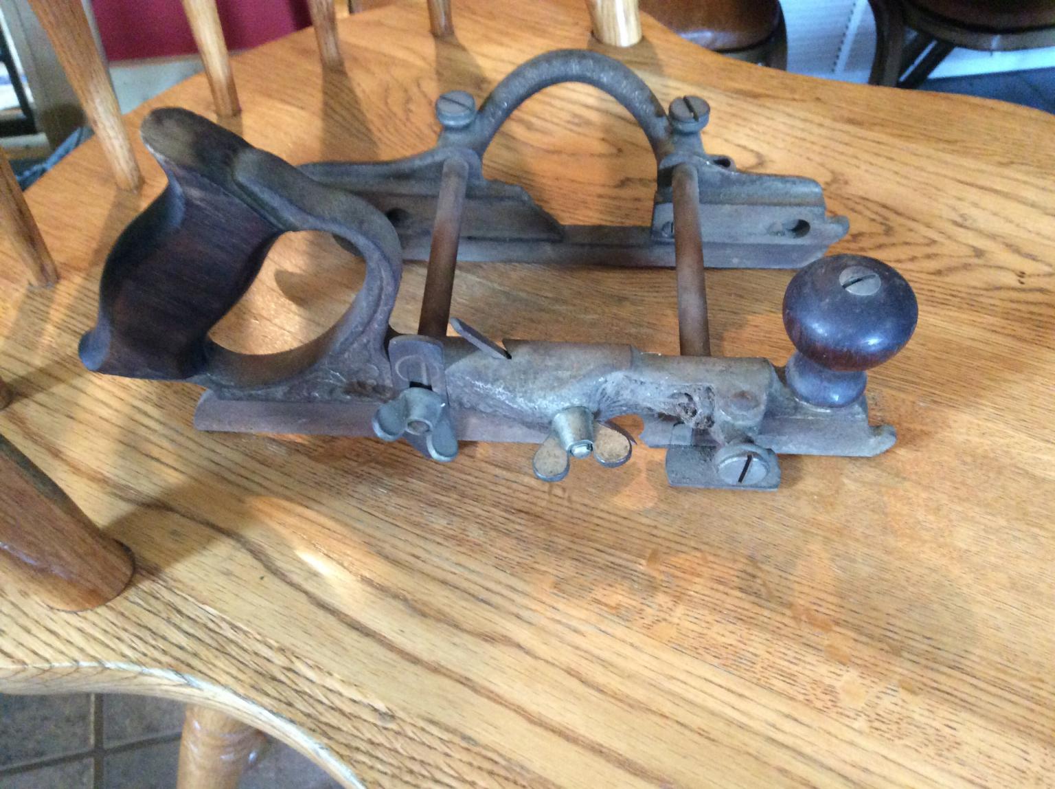 And a couple old rusty tools. Found an 18" long Craftsman Backsaw for a dollar bill. And, a Stanley #70 scraper plane. The saw can wait a while, until I have the right sized files to sharpen the DULL teeth with The Stanley #70: It has a curved sole and a cambered iron. Used to scrape off painted labels on wooden shipping crates. This one was very nasty looking. Wire wheels on the Drill press to clean most of the crud and rust off. Gave the iron the once over. Might have used the force, too The chisel came from FeeBay, an Eagle Brand 7, 1-1/2" socket firmer chisel. It needed a handle, and this was all I had on hand. I might try to see what I could turn, if I knew what the original looked like. Stanley #70 had a surprise when i cleaned up the iron, under the "STANLEY" there was a heart with the letters SW inside. The so-called Sweetheart era. handle got a good clean up, then a BLO/Varnish coating. Not too bad a day Tried to upload a few of the finished photos......NADA