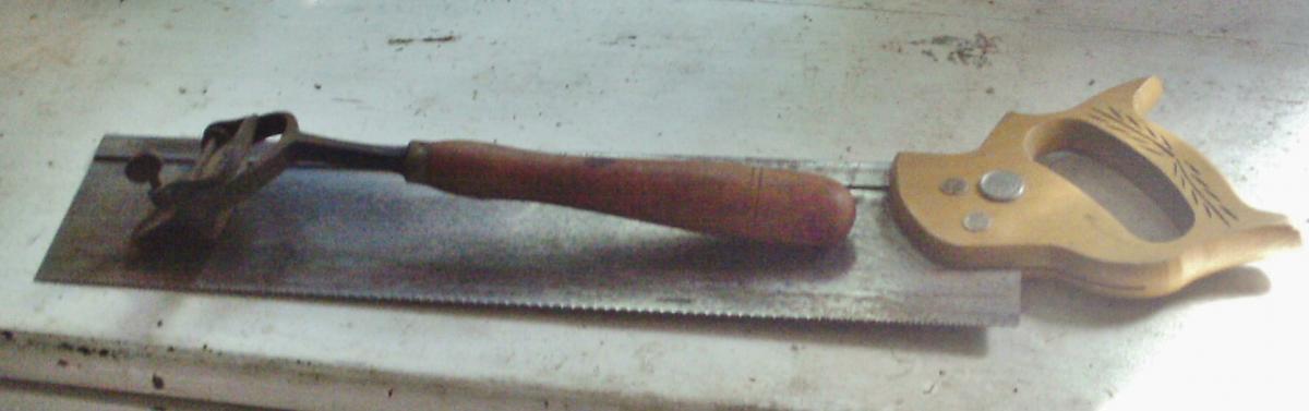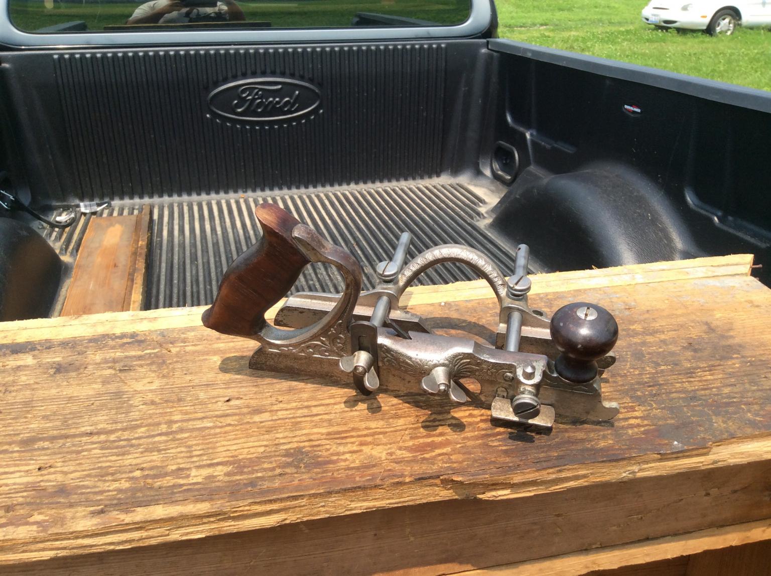 To call it a Fathers Day tradition may be a little premature, but, the last several years, I have been taking a Friday off to go exploring the garage sales with a couple of my daughters. There is a 100 mile garage sale near our house on that weekend each year and, although we don't find a lot of tools, we have found a few good buys on occasion. I hit one small sale on the roadside where I found these. A Stanley 46 and a neat little saw bench. I am getting closer to handsaw work with this little find. I included a before and aftershot of the 46. Unfortunately, it came without its irons as they often do. Fifteen for the plane and five for the bench! I have been hunting for irons since June and bought some on Friday via the auction site! Cant wait to try this plane. I have read that 46's are a decent plane. I certainly hope so as the irons made this thing much more of an investment! I also found a nice Skil wormdrive saw the following day! Sorry...no pic of that one right now.