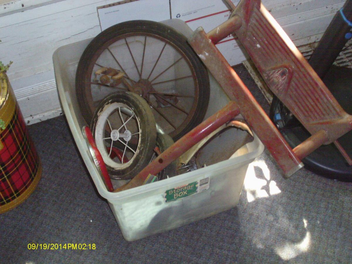Out on the Rust Hunt again today Found an expensive pair of tools The Visegrips will clean up ok. Same with the nutdrivers. Now, about that Non-hand tool rehab? Found a pile of parts in a clear plastic tub. Spent a whopping $10, too. It is the same age as I am. A 1953 AMF Red & White Tricycle! Needs a wee bit of TLC, though. But, all the parts are there. Might take a little bit longer to do than the usual day a hand plane takes, Ya Think? Will be posting a step-by-step blog of some kind for this, IF you people would like. May now be a hand tool, but, I might use a few to restore this old bike.