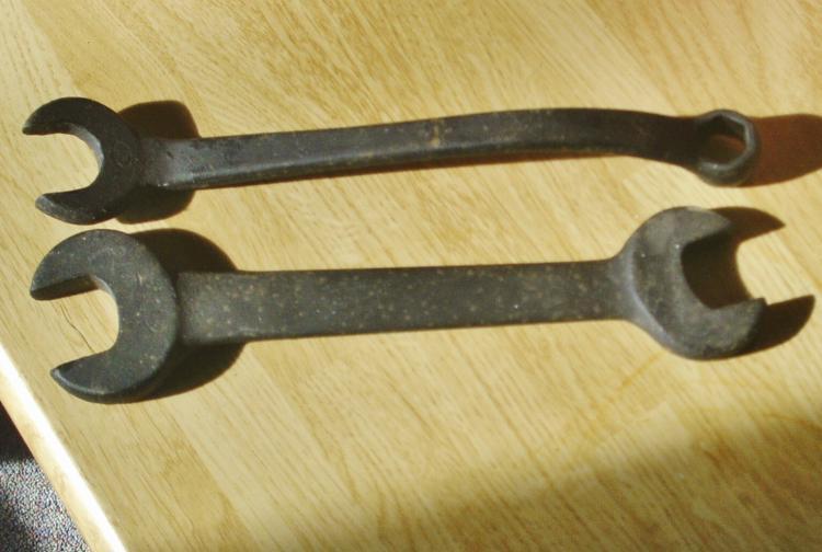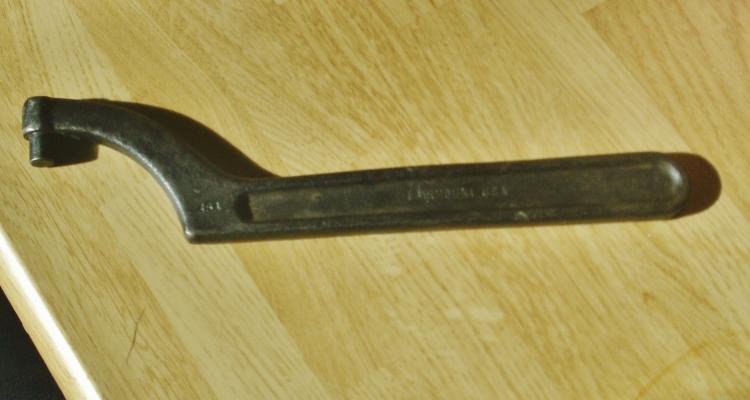 Bought a set of six wrenches one day. Two were just common 1/2" combo style wrenches....@ 25 cents each One was a Snapon XV-3842 Box end 1-3/16 x 1-5/16'' (Trailer hitch ball?) Two LOOK like they were in a FORD Tool Kit. And lastly, a "spanner" wrench? It is marked as a Fairmount USA # 464 3/8. Thinking the 3/8 is the size of that pin sticking out there? Not sure WHAT it goes to. Lathe chuck? Ford Tranny? Handle has a slight off-set to it, too. BTW: each of these wrenches was just 25 cent a piece. Any of the above worth keeping around?