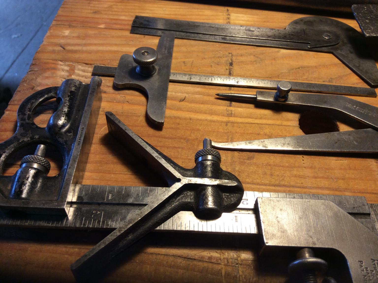 Not all that exciting but here are a few estate sale finds of recent. Brown and Sharpe, Starrett, and Craftsman in the mix. The box scraper is Stanley Sweetheart. Most of these were cleaned by me before pictures.