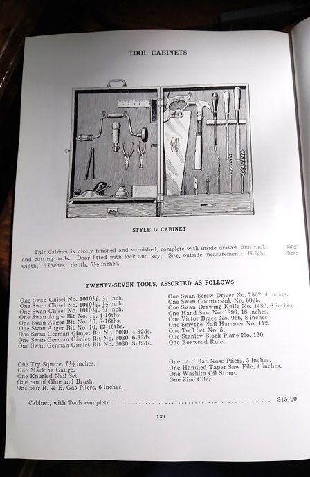 Seems I NOW have a Challenge ......Since I made that crack about doing a cabinet better than North Bennet Street School did... Tool Cabinet? Was pictured in this 1911 Catalog...back then, you could order complete tool sets....The one in the Challenge? About as Basic as you could get...27 tools and a lockable wood cabinet to hold them all. So...decided to start out with thin stock.... Here is half of them... Just over $5 per board...have bought 10 of them...so far.. Goal is to finger joint the 4 sides...add solid wood panels and then...split the box into 2 halves....Add a shelf or 2...and build a small drawer... First order of business...is to glue up 2 panels.... Stay tuned..