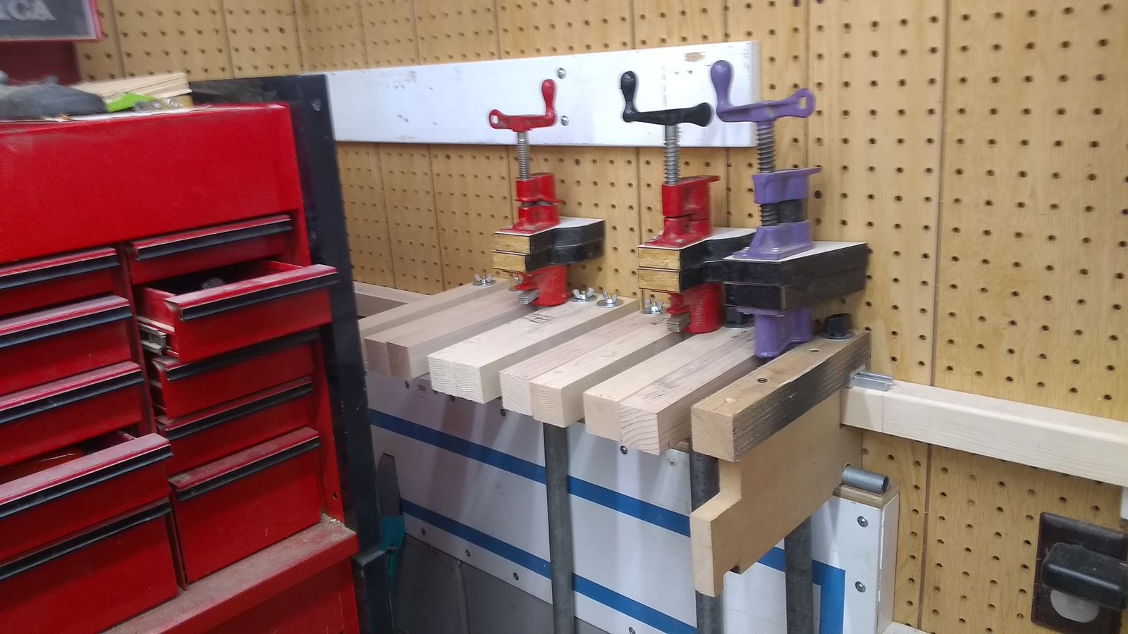 Gang, I am officially out of room in my shop so I need to get creative. My pipe clamp storage consists of a peg board with the pipe clamps hanging on hooks. I have about 25 1/2” and 3/4” clamps of varying lengths (2 feet to 6 feet) hanging and I need ideas to consolidate them. So, whatcha got folks?- 19 replies
