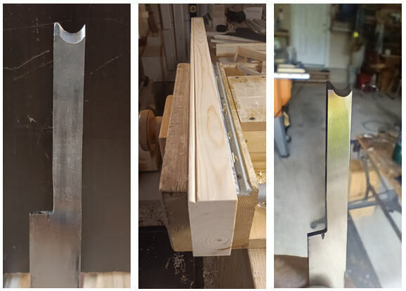 Introduction - Why Use Moulding Planes? Moulding planes are extremely effective tools- quick to setup and easy to use. They can take the place of most router bits and leave a much cleaner surface. Plane irons shear wood fibers, leaving a perfectly smooth surface ready for finishing. A router bit, no matter how sharp, leaves a scalloped surface behind. Now, if you are running 1,000 linear feet of crown molding, a router/shaper is the way to go. If you want to quickly add a bead detail to a door or table apron, tweak a rabbet, or cut a few dados, you can grab a moulder and have it done in seconds. It's also much easier to quickly wreck a piece using a power tool than with a moulding plane. Not to mention the dust, noise, and danger inherent in power tools. Moulding plane blades were normally bedded at 45 degrees to the sole of the plane, though British planes commonly used 50 degrees (York pitch) or higher. As the bedding angle increased, the action of the plane iron becomes more of a scraping action, and less of a shearing action. This is the same effect as increasing the effective cutting angle of a bench plane. The benefit to a higher pitch is that the plane will perform better on hardwoods with difficult grain. The cost is the plane may be harder to push and has a reduced usable edge life. On the other hand keeping the blade sharp goes a long way to making it very effective. The Concept I started by selecting a piece of Spalted Maple and Pine. The idea here was to mate the two together vertically where the top half will be the Pine and the bottom half will be the Spalted Maple. Pine has a nice soft comfortable feel in the hand. So I wanted to chance using it for where the hand rests on the top half of the plane. I needed the structural part on the bottom where the bead profile, quirk, fence, and depth stop will see the wear. So instead of getting into boxing solely for structural benefit of the bead profile itself, I decided to make the whole bottom half Spalted Maple. This side bead moulding plane cuts a bead on the edge of a board. Because of the integral fence and depth stop it is simple to use- hold it upright against the edge of a board and plane until it stops cutting. Very simple. These type of planes are always boxed- at a minimum the "quirk" of the bead is boxed. Better planes are completely boxed. As mentioned, my whole bottom half is boxed. These are very useful planes to have on-hand. A bead detail is useful anywhere you want to add interest to an edge- along a table skirt for example. It also serves to soften a sharp edge, protecting people and the edge from splintering. A bead is also a good idea anywhere you want to distract the eye from a joint where two things meet- along a the vertical lines of a door, or along the edge of a ship-lap back of a case piece. The bead hides subtle variations in the edges from the viewer. Building the Body and Wedge The overall plane dimensions are 1” x 3.5” x 10”. I hand planed the two halves and squared them up all around. Then I joined and glued the two halves with a full length sliding dovetail (as shown). Next, I shaped the bottom full length with the ¼” bead profile, quirk, fence, and depth stop. I then cut out the mouth, cheek, bed, and breast. The Bed Angle is 50° and the Breast Angle is 60°. The primary bevel angle on the blade is 35°. Next, I shaped a 10° Wedge. The final shaping comes after making the blade. Detailing There was some very minor chip out along the mating surface edges of the upper and lower halves, between the Pine and Spalted Maple. So I decided to use my scratchstock and strategically place a bead on both sides at this parting line. I started to use my Lee Valley Veritas cast iron scratchstock but its fence depth was not great enough. So I used my home made scratchstock with the veritas ¼” bead cutter. Surprisingly the scratch stocking was very successful. Spalted wood especially Maple is not easy to do but can be if you monitor your pressure and speed. Making the Blade It’s now far enough in the build that the blade needs to be made. I assembled the rough cut out blade stock into the plane so that it was just poking out of the mouth and scribed the bead and quirk outline on it. Next, I setup my homemade forge. I showed this in a previous post. I then annealed the blade to remove the hardening. Next, I cleaned up the blade and gave it the first grinding, shaping and honing. Then I re-hardened the blade. Before going too far, I wanted to make a test cut to make sure I had made a functional plane. I didn’t want to push cutting too much because the blade at this stage is brittle. The test cut was very pleasing. Then I fired up the forge again and tempered the blade. A straw color means it’s perfectly tempered. It softens the steel a bit and readies it for final honing. Lastly, I did the final honing to the blade. I used my DMT Diasharp diamond stones 600, 1200, 8000 and final polishing with a Shapton Ceramic waterstone 16,000. It came out very very sharp! Then a quick final test cut pass confirms the blade is ready for use! Preparing for Final Finish After the first coat is dry, I go over with a brown paper bag. This is an old woodworker’s technique that many seldom hear about. It de-nibs, lightly sands and buffs the wood. IMO it’s better than steel wool, costs nothing really, and cleaner for the surface. The Final Finish I applied the final finish. I gave it 3 coats of General Finishes Oil based Gel Top Coat, Satin. Each coat dried for 12 hours. Between each coat I Brown paper bagged it. Then I gave one generous coat of wood butter and polished. Hope you enjoyed this! Cheers!! Thanks for looking! MrRick