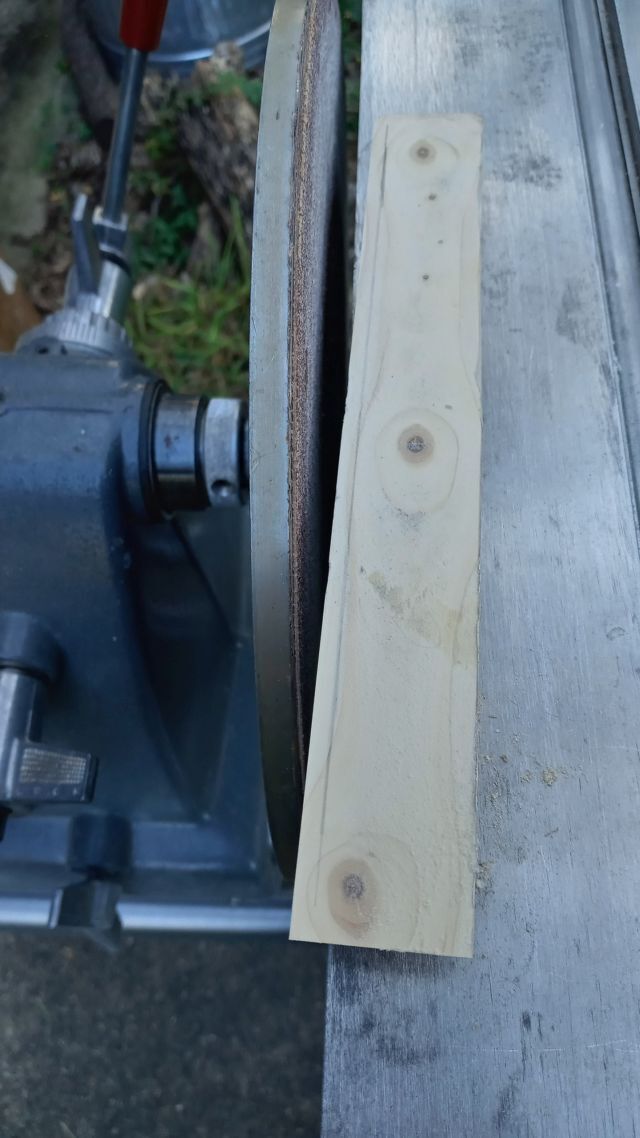 This is going to be boring, so you are warned. Christmas tree stumps that you see at the stands each year, they toss for firewood. Well this is designer firewood. The real dad left this little boy before birth and the mother. She has since found another good guy in the Coast Guard who loves them both. She is also attending nursing school. Just wanted the little fellow to know that we all love him. Starting at the beginning. You can see where the tree stand was inserted in this one. Sides cut and ready to square up. Truing the bed. Needs some help. As Steve Neuman says, we have ways. As you can see, cut it apart to make clean cuts for the wheels and leave the top for the boiler.