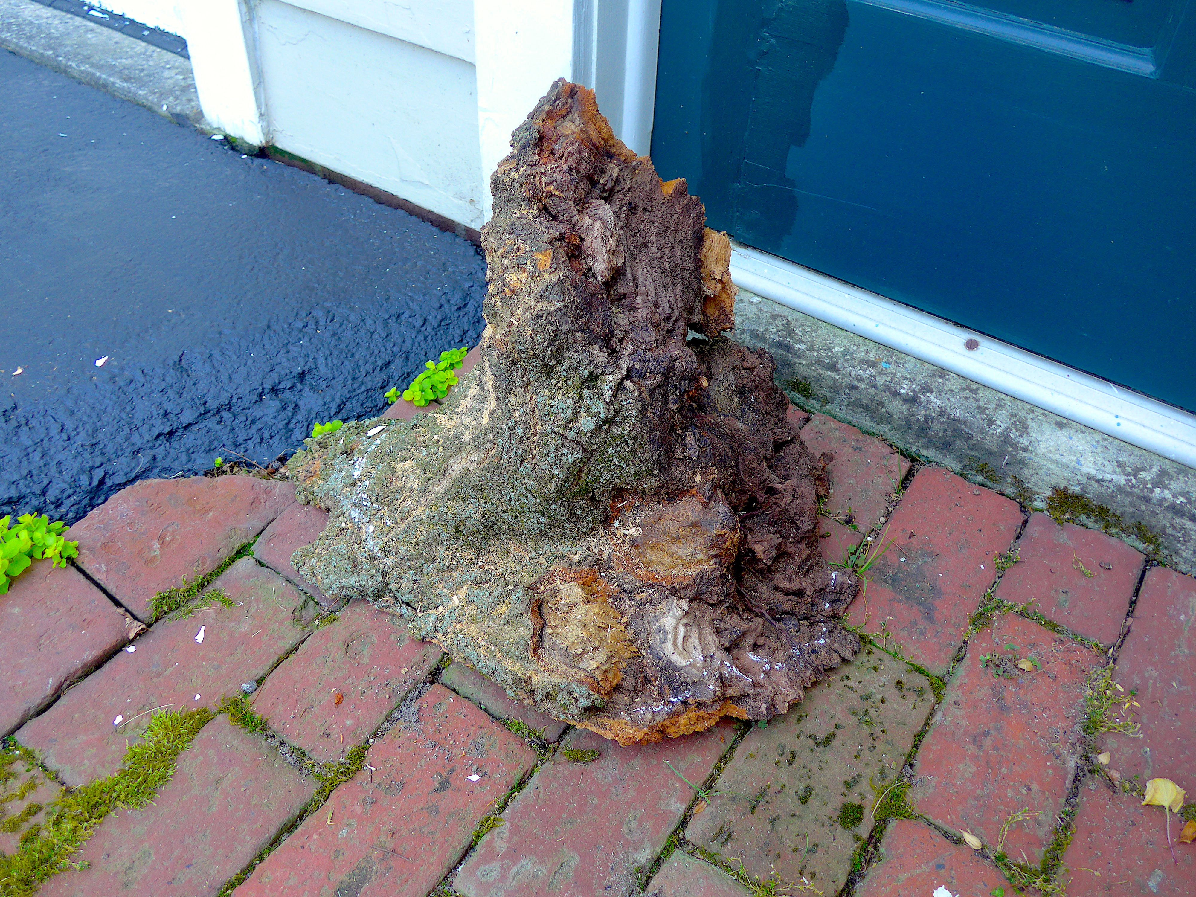 Here's the burl that came from the trunk section of our red oak. Any suggestions on what to turn??? The last photo shows 1 of 3 trunk sections that came down today, along with my burl.