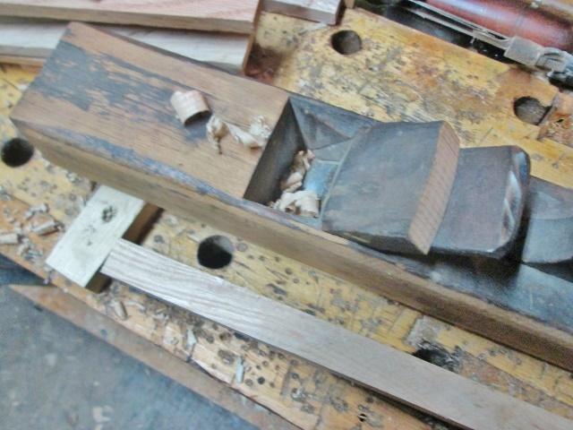 In my shop, there are just 2 spokeshaves. The one in front is by Seymour Smith & Sons....the other...haven't a clue ( hanger hole was done by me) No-Name was having issues, was chattering more than it was cutting....took it apart.. The cutter needed it's back flattened, and the bevel honed. The cap was ROUGH...needed the bevel polished up, the underside flattened to match the iron/cutter....but....the "bed" for the iron to sit on....60 grit sandpaper would be almost smooth....we have ways .. Still a bit more to smooth out. Needle file, run all the way to the back, as the iron sit back there, too iron and cap done, bed cleaned and flat... Take it for a test drive on some White Oak...mmma Nosing profile? So, I can use one of these two.. Until it feels a bit dull, and simply switch over to the other one....always nice to have a back-up..
