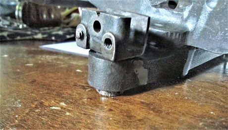 Well, Stopped at ONE garage sale.....Spent a bit over $15...Picked a pair of straight jaw Visegrips, and a "modern" Yankee drill... That had 3 drill points. That was the $0.50 of the $15.50.....and I almost drove off without these two..why? A COMPLETE Stanley Mitre Box with it's OEM saw...had to take the saw out, to make things easier to cart around... So....in order to do a rehab on this new "toy", one item needs addressed... need to put away all of this mess....including those freshly cleaned up bits.. other end of the bench was worse..( board was to test how sharp the saw is....VERY sharp...) Took maybe 10 minutes to go from this mess...to... I think I can live with this... That Disston saw... And, when I cleaned the spine up, there was another Disston & Sons stamp. Took the Brass out, and shined them up. Saw is 26" long, not counting the handle..and WAS 4" under the spine ( now about 3-1/2"..) which makes the Mitre Box it goes to a #246, or a #346 model. IF you look at the bottom of the guide rods, instead of a square block, there is a split cylinder. Both stock rests and both stock holders are there...was missing depth stop back here ( had one in me spares box) Afraid to look under the top deck, and see what sort of shape the main deck is in...No name plate showing Model number.. But there are 4 patent dates, all from 1904...There was one item to replace.. An old break..and I had a replacement in the spares box...Decided to soak the moving parts in PBblaster, since none were moving....got rid of the plywood deck... Well, well, lookee what I found. Those stock rests ( for doing crown molding) These are OEM, OLD ones..they have a small button to keep them from being pulled out too far ( and lost) But, if you take the rest and that thumbscrew and holder around front... That same thumbscrew threads into the metal disc in the deck...and you have a length stop for repeat cuts...Shook up the can of PB..and gave things a soaking... Swing arm did not want to...swing...let this soak for about an hour, gave it another try...was able to move it nicely enough...details? One, in addition to the numbers on top of the quadrant, that show the number of cuts for a given box ( 4 = 4 sides = 4 cuts= 45 degrees) there is a scale along the front edge.. These are degrees. There are detent holes under all of this, to lock the saw in place for the cuts... Still evicting spiders...That HUGE slotted "bolt"? is not a bolt..notice that little hole in the slot? There is a tapered pin in there, when you install the guide rods into the arm, you tight a bolt at the end of this pin. It spreads the slot, and holds the guide rod assembly in place. You can also see the detents the swing arm locks into..other end of the swing arm turns on a "King bolt"... Which I may need to remove, to clean and repaint everything that needs painted.. Intent is to make this Mitre Box & Saw look like the day Mr. L Millice bought it...Saw has been cleaned up....box has been taken down to the bench....need a bowl to toss cleaned up parts in, and a new 6" brass wire wheel for my grinder....and a 3/8" thick plank of Poplar, 6" x 24" Project wood. old wheel sheds worse than a sheep dog in August... Stay tuned...