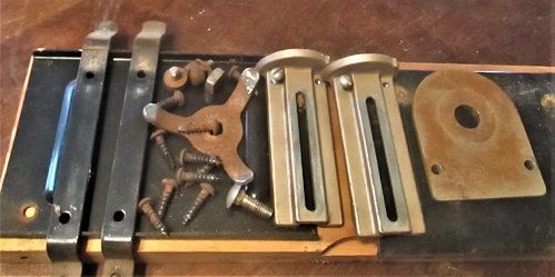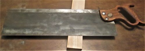 A Garage sale find earlier this summer....Millers Falls No. 1816 MitreBox and saw.....Paid $1....needed to pull the nails holding the box to an old pine 2 x 8 plank.. Got to looking the saw over....Warranted Superior 4" x 16".....Hmmm, might be worth a rehab? (hide yer eyes, Mabel! ) And.. Shouldn't have to worry about any etch, would have been a silk-screened thing anyway...but...that handle needs ..something... Yeah...right. Traced a better looking pattern, bandsaw to remove the worst areas......Flex-shaft Dremel with several different sanding grit drums....LOTS of sanding dust...check the grip with my hands....refine as the hand tells me to....dig around in the "spares drawer" find a couple better looking bolts.....then a coat of stain... Look a wee bit better? Sanded the saw plate as clean as I could...polished the bolts.. Shows some improvement? Test fit back into the mitre box.. The old 2x plank is outside, sitting in the firepit. That orange sticker? Was their asking price...wound up paying just a dollar bill...at least the logo can be read... I think I was maybe 9 yrs old when this was made.....which means I also need to rehab the box... needs a new deck, this one is getting pretty chewed up...There is a spot ... That I'll need to copy....as that is where the uprights rotate in... That little yellow handle Irwin removed the bolts, 2 per fence piece.. More screws and a bolt...this is what the uprights use as a base...three lobe tightens things up, once an angle is agreed upon... Uprights, there is a captured square nut that sits inside the uprights. 2 more bolts...and the rest of the parts... Legs are separate pieces. ALL the wood screws appear to be the same....might have been out of the same bin? Have a decent looking Ash board in the shop....might just make a new deck out of it? Forstner bit to make that recess...THEN rip the 1 x 6 to width? Have already jointed one edge.. Stay tuned
