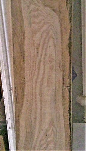 Grandson dropped this thing off... Just a small, 2 step, stepladder....not crazy about the brown paint...besides that "issue" there is something a bit worse Those 2 slats across the back of the legs....particle board. And one had been used AS a step....broke the slat and a piece of the leg off....Plan is to repair the broken leg, and replace the ugly boards with new one out of Ash... . I happen to have 9 planks of 1 x 6 x 6' Ash...should be able to find enough in there? Maybe NOT this section, though.. Save this for another day..but, further down this same plank.. Might find enough "parts" in there? Might even Build a brand NEW one, using the old one as a pattern? Stay tuned..