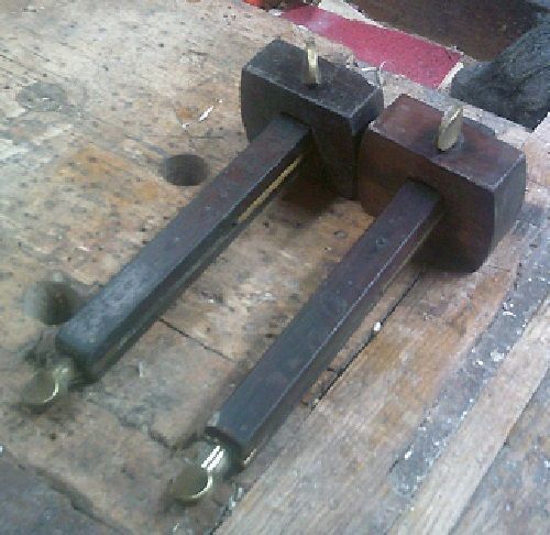 Have a few Marking Gauges, that need repaired...first one.. A wee bit worn? We have ways.. I'll cut this for length (Maybe..) and plane and spokeshave to fit...drill a hole for the pin/nail The other 2 sitting there? Are Stanley #77s.. They have both a single pin.. Use as a marking gauge,,and.. The other face has 2 pins, one adjustable for the width of a mortise..however.. A few things are missing..which is why there is now a sheet of 0.032" Brass in the shop...the "Handle bar wear plate" I might cut out with a scrollsaw...the other 2 missing parts.. This is the Stanley No.65 SW Gauge...note that brass slide? it is what the thumbscrews tighten down on...instead of digging into the arm of the gauge.. Might try to build a fancy case for the marking gauges... Resaw this Pine down a bit? Along with that sheet of Brass... I picked a few bags of "parts" Might find some use for these....parts is parts... Stay tuned