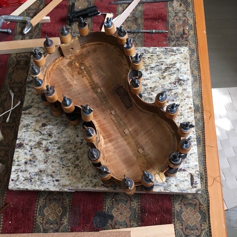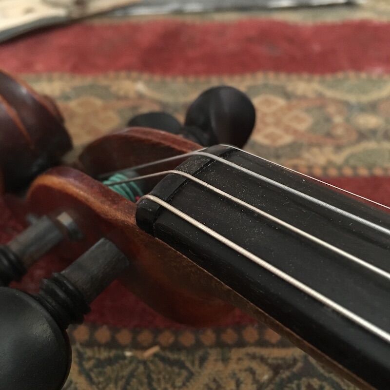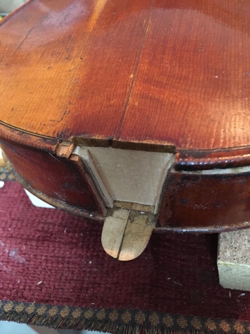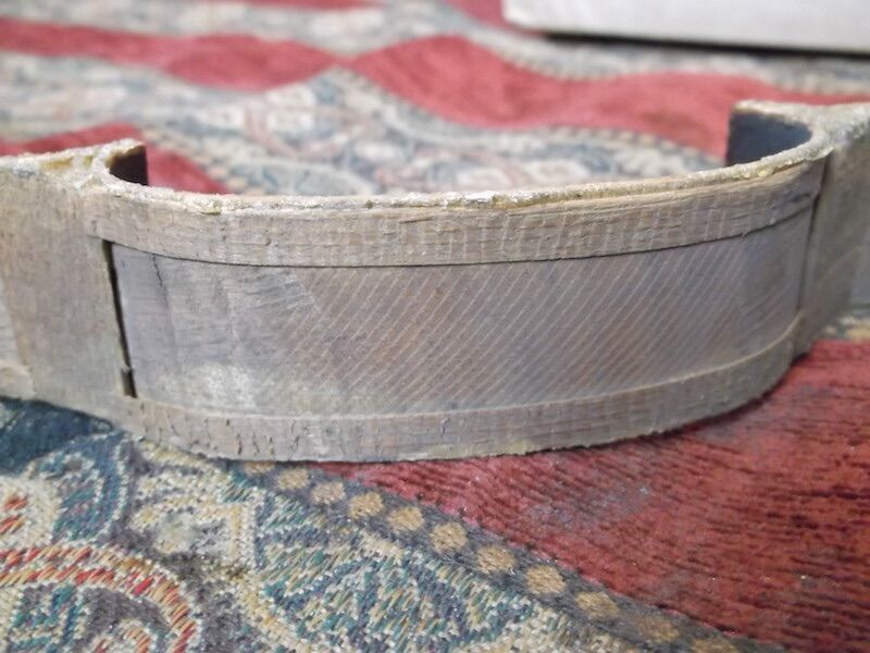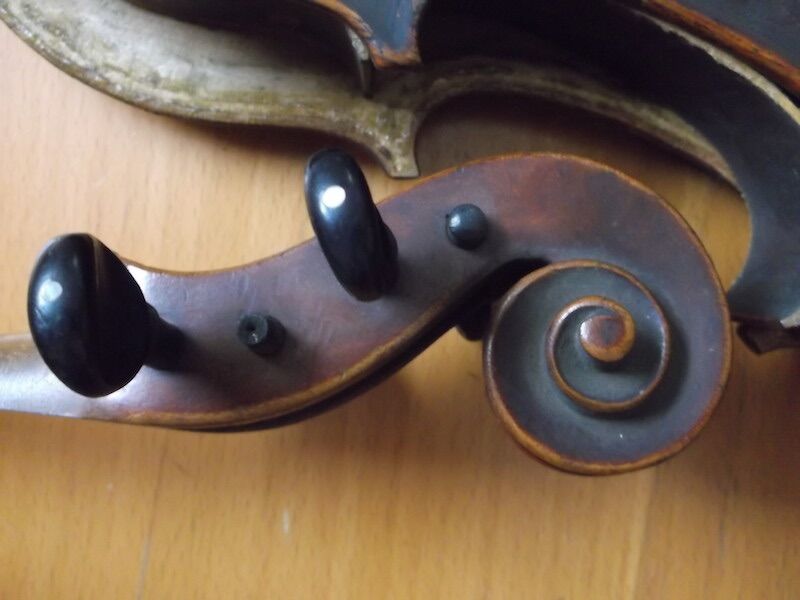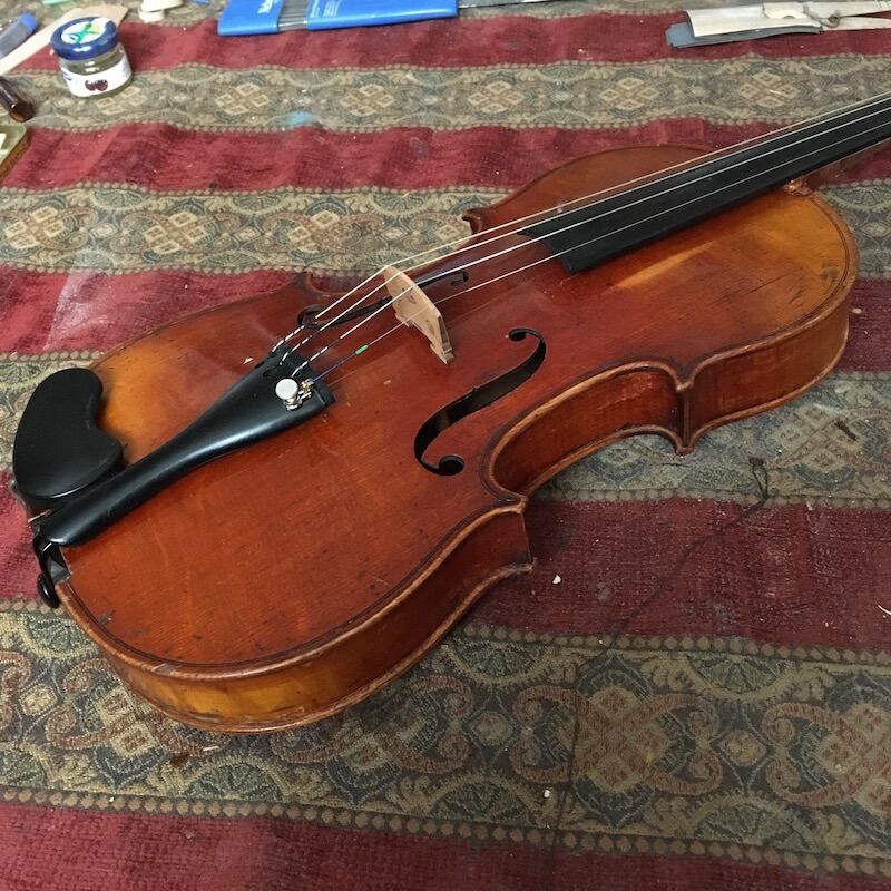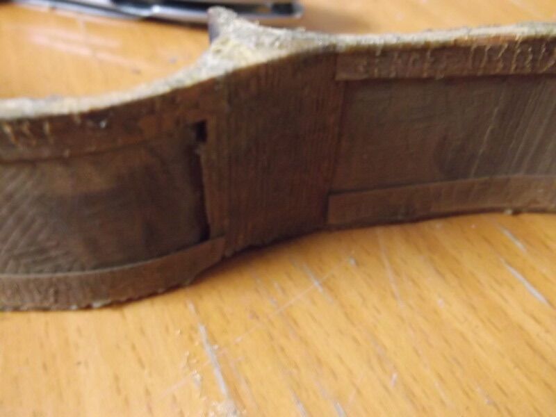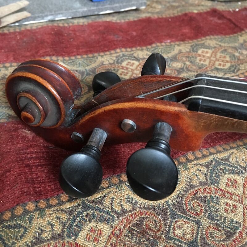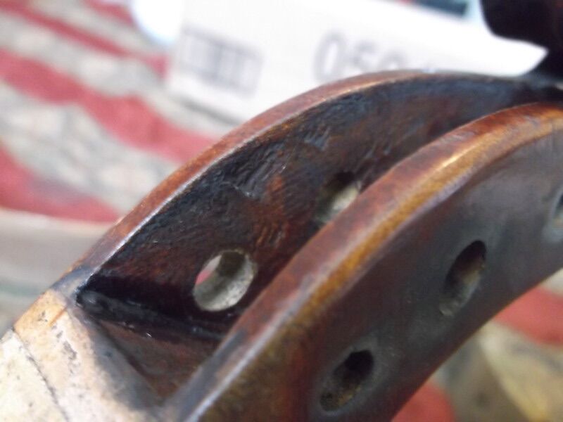 As promised within the Use of an Angle & Taper Calculator in everyday woodworking thread, here's the amateur hobbyist play-by-play of restoring an old violin. This old fiddle came to me in its original or so coffin case and promptly fell apart as soon as I removed the chin rest. The first 20-some images chronicle its condition with attention to tool marks. August 14-15, 2018 Gut strings! Keystone-shaped dovetail-cut pegbox repair, likely c.1880s. Wow, lookie that patina! This violin is not a Kloz, not remotely built as a Kloz, certainly sounded nothing like a Kloz, I've reliably been told. Likely an authentic repair marking, this work failed, maybe around 1920; the glue I removed was oddly sticky with a sharp astringent odor. All of these images are used to date and identify the fiddle. It is thought to be mid-1800s, a build of the French Mirecourt region. Cannot fake this crackled spirit varnish with embedded dirt / rosin. August 23, 2018 Spent some time cleaning up the top, meaning glue edges and whatnot. Then reassembled the ribs to the back. Cleats ("jacks" to the Brits) being glued. I shave them flat and scribble a few notes on them which get sanded off. September 11, 2018 By mid-September 2018, a new end block is successfully crafted after eleven tries. Working backward, I glue the block to the heel neck. Most or all violin neck heels are cut squarely, a big tenon, the end block is a big mortise. This joint is dovetailed, so I keep it as-is - cleaned it up and sharpened the edges. Officially my first "neck reset". Wowwie, look at that neck angle! What about the projected height of the strings !?!?! The violin is back together about five weeks after I received it, strung up with used $80 strings. The old end block on display. A new bridge is on the violin. It is 40mm high, a good centimeter higher than specification. Way too high for a practiced violinist, but bringing the fiddle to a bluegrass circle, I note the higher string angle does produce a great tone. Even, dare I say, a fantastic tone. Mo' downward pressure. But it is not sellable at 40mm. 29.5mm - 31.0mm is the range. My projected height is all off. Image sequence was thrown off, but the top is removed, the end block pried off, and the neck reset. My second official neck reset. Thank the saints I am using my own hide glue through all of this. In this image, which I *think* is in correct sequence, one may see a slight difference in neck angle. Hard to tell, but I was off by a little under 2˚ And she's back together a second time. New pegs in newly-contoured peg holes of the modern** 1:30 taper. New fingerboard and nut all pictured here. ** modern since the early 1900s, replacing 1:20 taper or whatever was traditionally used in the shop. New strings this time. $40 D'Addario Helicores. The pegbox repair was undone, cleaned up, and reglued using the same piece of wood. I *may* have used Titebond on this one joint, as it represented something I never ever wanted to come undone again. All the other joints are hide glue; in theory, a violin may be taken apart and repaired indefinitely. Hope you enjoyed the tour. - jim