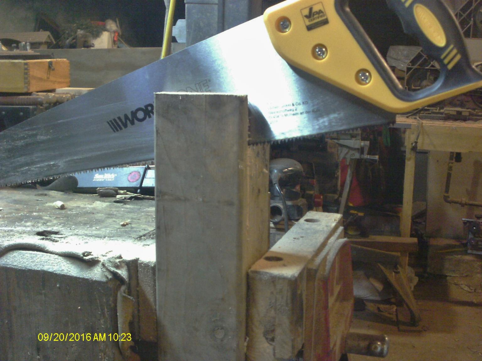 Ok, as part of a test drive for the Aldi's saws..I tried the larger saw as a Rip saw...not that great... First off, I tried a "kerf cut" to help guide things along. Set up a Stanley #45 with the narrow cutter.. Thing with a 45, you have to keep an eye on the fence, as it tends to slip a bit. Set about 3/4" in from the edge, with an almost ( fence) matching one one the other side. Stand this 4x4 straight up in the vise, and try a saw Super fine sawdust? This would take all day.. Tried out a little better saw.. Bigger teeth, coarse sawdust. But, towards the halfway point, noticed the rip saw had drifted a bit to the left. Flipped the 4x4 over and came down the other side...there is that drift again. Will have to "stone" the left side of the teeth.. Finally got this 4x4 cut, rather a bit ugly... Real ugly. So, I got out a couple other planes.....A cambered jack plane ala Schwarz That big old knot kept making things difficult....Then to a larger "try" plane... Instead of traversing the grain, I went at an angle to the grain ( plane is a Stanley 5-1/2, T-17) then, to keep from making a "banana" a LONG plane was used.. A No.7 Jointer should do the trick. The iron has no camber, and acts almost like a smooth plane See-throughs from a jointer plane. Still need to do the same with the piece I ripped off. I think I will stick to Bandsaws for this sort of work....I am soaked clean through....and in need of a Guiness...was too pooped to try a #3 or #4 smooth plane....