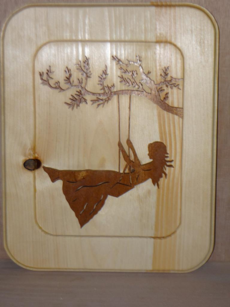 Just got this one finished for our upcoming show this weekend. Cut from 1/4" Walnut, Cherry and Maple. Light kit from ScrollerOnline Lights Off - what ya see is what you get (maybe) Lights ON - surprise - the light kit has several different modes, battery operated and remote controlled (would be difficult to turn lights on and off with this hanging on a wall.