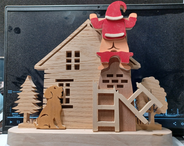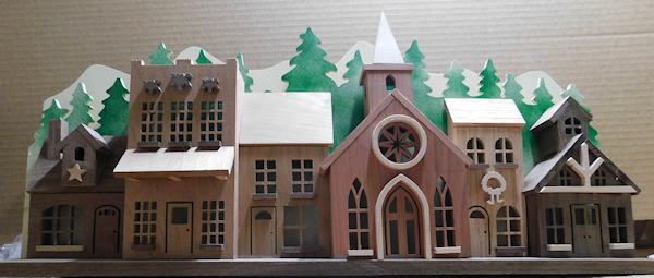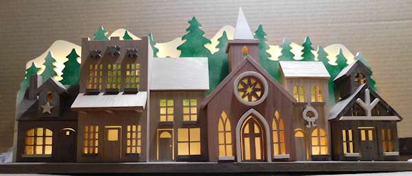 Just finished the latest "Lighted" project. This one is called the Lighted Holiday Village. Again, I'm just showing off. Taking it to a show in Dayton, TN this weekend to see what kind of interest I get. The project is about 24" long and includes walnut, maple, aromatic cedar, sephelle, oak (both white and red), and a couple others that I have probably forgotten. Picture not very good because I got too close to the project. Will try to be better later on. Above with the lights off Lights On
