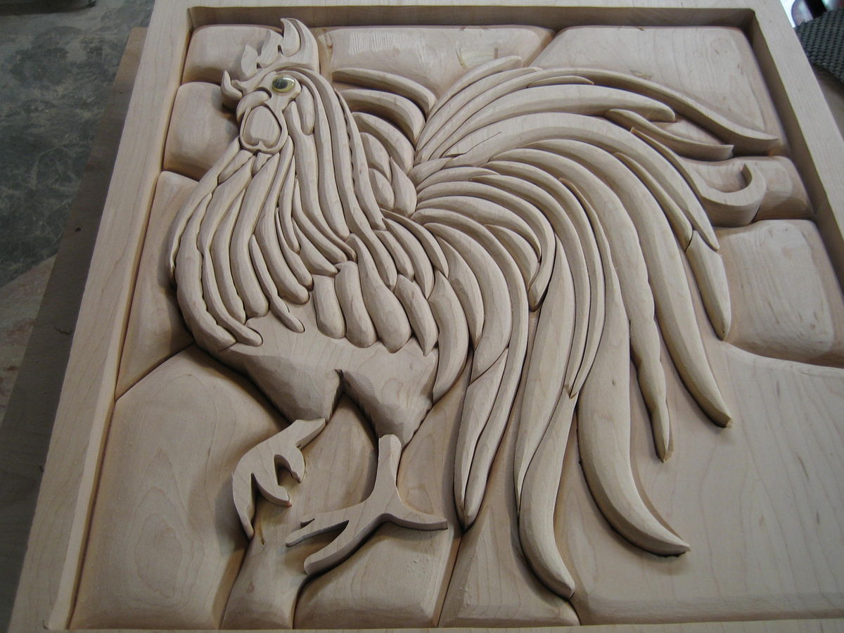 This morning I looked over what I did last night by bringing up the man chicken to the top. When I do things I have no plans for the next step as Paul Harvey would say.. I show what I mean by not thinking...See the parts of three biscuits up top inside the frame..I put them 1/4" from the bottom of the 1" thick maple.. All these pieces will be glued on to the 1/2" BB which I installed to the back side of the frame so I can have something to carry around as I go from station to station doing all kinds of shaping of the pieces of wood..I didn't need biscuits to start with but that's just a habit I acquired when edge joining all my wood.. So whats my plan?? Don't know till I get back out there and see where I can do the least amount of damage and make it look like I am always under control... Now I am thinking I can make these funny shaped things look like UFO's have invaded the fowl ranch.... Another strange thing happened this morning...I took this picture this morning.. I down loaded it this morning then after eating breakfast I come over here and started this post and tried to find the picture..No luck so I go back out to the shop and take another picture and come in and load it. I tried to find it to post here and couldn't find it.. Come here wife and help me for this computer is being strange this morning....I screw around for an hour or so then I looked down and notice the date is Feb 1,,,,,, so that is where my pictures went for I been looking under January... and they start a new series of pictures each month. Like I said I am slow and sometimes I am dead stopped...Now I am sorry to say all these feathers will all be different when I get through playing and as I said before I have no plan.. so as long as the colors and stains last I will keep having fun experimenting. Never done a man chicken before so I hope I shape things in the right directions.. Got to look up UF0's before I go to the shop.. I got some round dowels I could turn in to wheels and tires but not too many pictures of them being built that way???