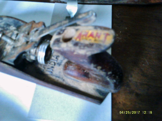 Picked this this afternoon... Hey,,for $5, might as well try... At first glance, you'd think it was a Stanley..... Not! Made in India, an Anant A4, Stanley knock-off. A-yep, this will take awhile..... Strange place to stick a label.....There IS a bolt down in that hole...the wrong one of course. As soon as I can rustle up some GOOD batteries for the camera, I'll go and open the Rehab Shop......will TRY to be done by suppertime. Will post results here...do you want a "blow by blow" account, or just the final results?