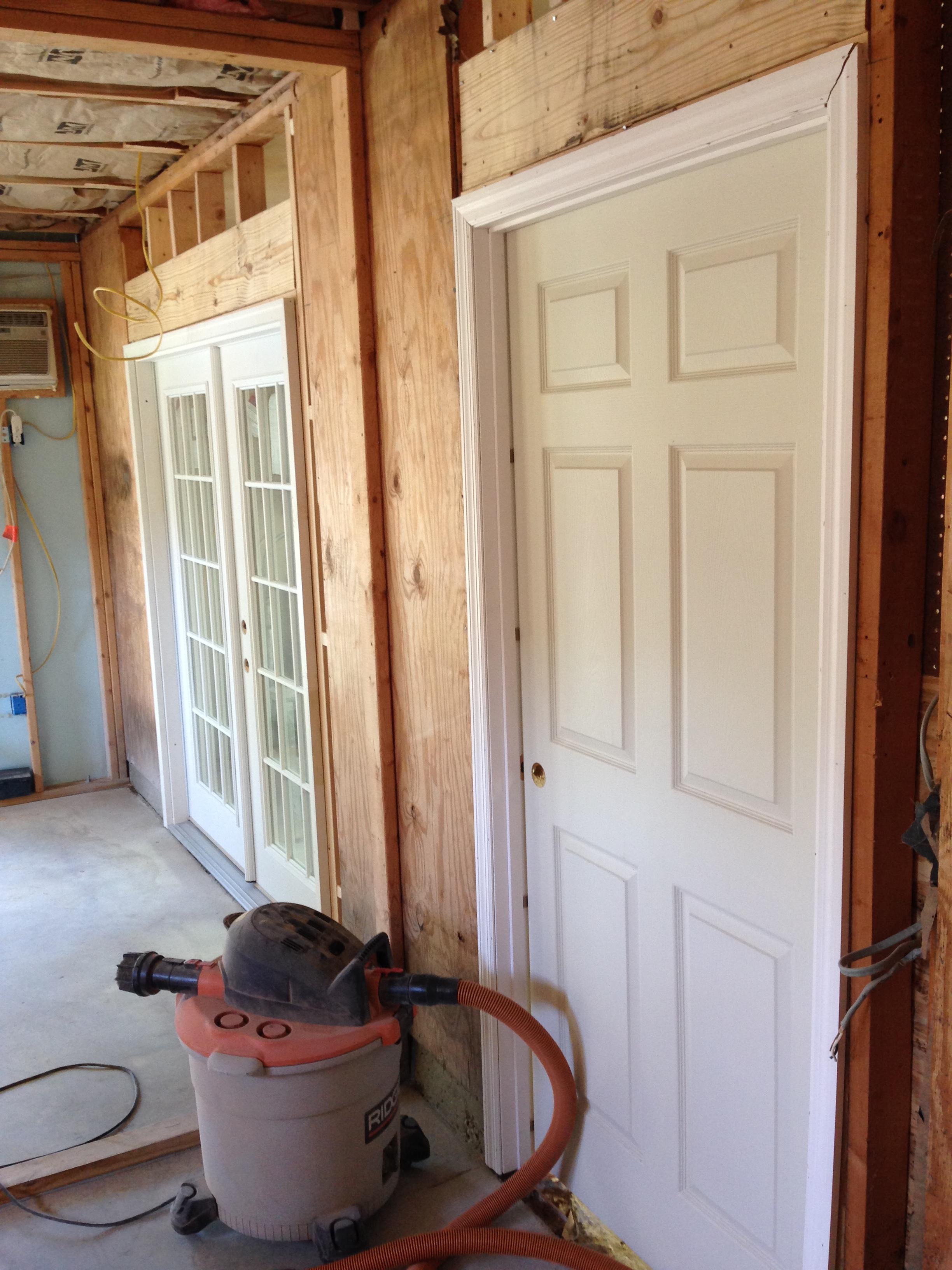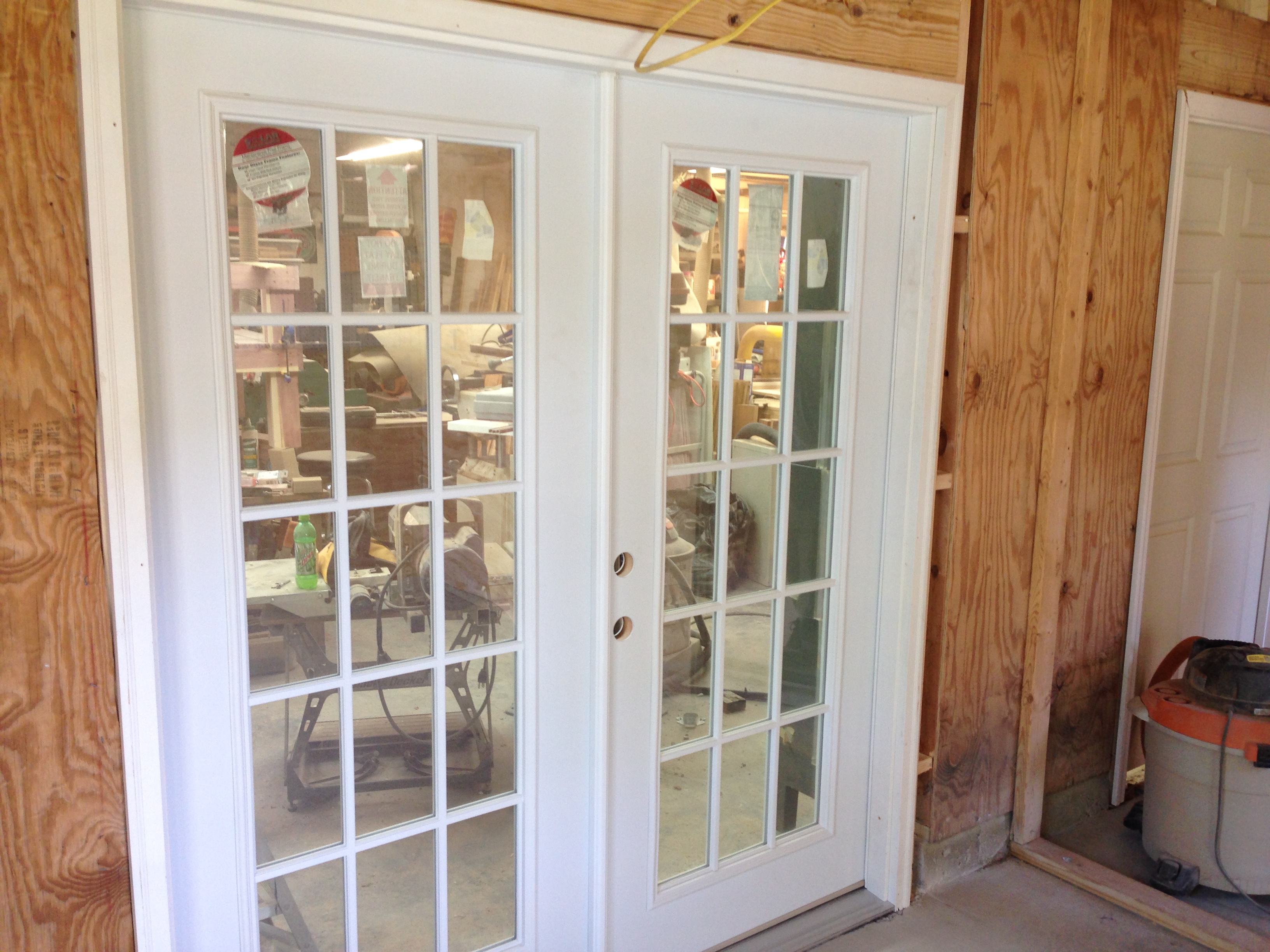 Three days of work at John Moody's shop addition has yielded two doors cut in, insulation added, plywood on walls and half the ceiling and many laughs.