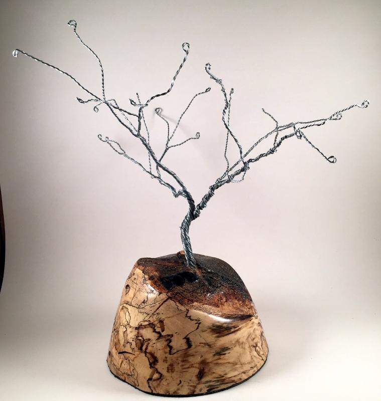 A lady saw my "gnarly Christmas tree" video and asked if I could make her a tree to display her miniature, glass, hummingbird collection. Had a great piece of spalted beech I used for the base. I'm hoping she'll post some pictures after she gets her birds on it. Steve
