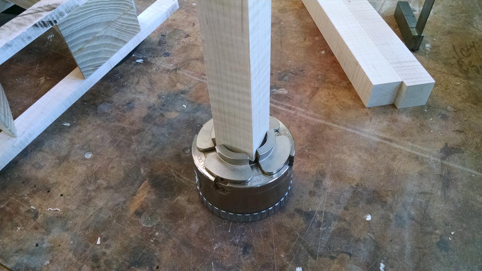 I've been rolling along pretty good with spindles for Shaker stools, feeling pretty good about myself, feeling a little cocky actually. Then the powers that be will always smack ya down, just to remind you. I got a little aggressive and she dug in. got lucky with this one, it just kind of fell to the floor without fanfare or violence.
