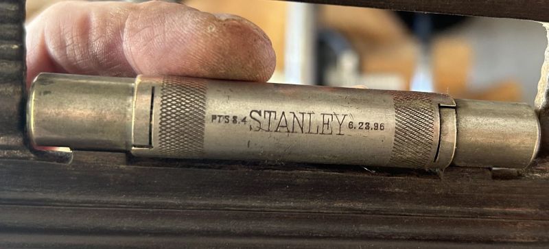 The last on-line auction I "attended" was near the end of September, 2021. Several tool lots; won a few; several I didn't. Most of my purchases were more L&G related stuff so I won't bore you with that. However, one lot turned out to have some surprises. Actual auction site pictures. I bid on this lot thinking the tool box might be an old Craftsman or ??? hip roof tool box. Didn't look inside the toolbox really at the pick-up site. It was kinda frenzied there and I was under a time crunch to get back in time for grandson's football games plus my stuff was located all over and you had to pick and load everything yourself. I wasn't sure I could carry & load the tool box by myself after I grabbed it off he bench. Good thing I got there early and was parked pretty close. I figured with the tool box and the random stuff I'd bid up to $10. The tin on the right had a couple dozen or more random drill bits + driver bits, + a new 1/4" dr, T-15 or T-20 torx bit (don't remember now). There was another tin directly below that was full of miscellaneous screws etc. The bucket + Folgers containers were loaded with new, packaged, random hardware. The grandsons were happy with the (2) Official Little League baseballs. Right picture shows the toolbox. A really nice HD box that someone fabricated likely in a HS metal working class. Its HEAVY even w/o any tools but... A few tools were in the tray. I could see some of them in the auction picture. A couple of chalk lines. Left one is a newer Irwin model. Gave it to daughter's fiancee'. Right one is a Straight-line...needs some work. Some 1/4", 3/8" & 1/2 drive sockets and extensions. Once they hit the wire wheel, then buffing wheel, all but one went to daughter's fiancee'. So why was this box so heavy beside made from 1/16" steel?... ...cause all this was in the bottom. A few treasures as it turned out. Next picture does some 'splainin' Lucy... (#1) is a Stanley Handyman, 10" (IIRC) swing ratcheting brace. Still has the decals on it. Probably late '60's-early 70's? Needs some TLC, but it works. (keeper) (#2) Stanley, Sliding T-bevel. 1st look, identified it as a No.25; more to come later. (pry from my cold dead hands type of keeper) (#3) Stanley 481A-18 (oz) masonry hammer; needs a little work, oh & a handle but don't make them like this for a long time. (keeper) (#4) Wards-Master (Monkey Wards) 1/2" drive speed handle; probably from the 1960's?? I have one (same brand) that was my grand-dads from the late 40's-early 50's. Been my user & in my tool box since the late 1960's so daughter's fiancee' scored it too. So what else of interest is in there? Well..let's see. First lots of 1/4" & 3/8" shallow well sockets, mostly metric and mostly Taiwan. Cleaned 'em up passed them on to daughter's fiancee' (#1) A Snap-on, combination box-end wrench from late 40's to early 50's. It may have been plated or could have originally been black oxide coated. NO evidence of ANY plating remained. more pictures at the end. (#2) A Craftsman combination box-end wrench from the 40"s to early 50's by logo. (#3) A Craftsman combination open-end wrench from the late 30's to early 40's Probably was plated originally, but long gone; pics at the end (#4) 1 of a set of Proto combination open-end wrenches from 1/2' to 1-1/16"; missing the 3/8-7/16" wrench. Cleaned up very nice; gifted to daughter's fiancee' The remainder is still in the box waiting on spring for next step. except the (2) 1/2" drive, deep impact sockets on the left. Already in my "shop box" Snap-On wrench is 1-1/16" x 1-5/16". In a former life, these sizes were used quite often. I actually have a newer version of it. The Craftsman is 15/16" x 1". I've since completely removed all the rust from both, coated with wax then wrapped in wax paper until I decide their fate. Likely, I'll clean again, then cold blue them along with some others in the box. I've since found another Craftsman, same era (3/4"x13/16" IIRC) in the box. The Stanley masonry hammer. Re-furb started, but will have to wait until spring now to finish. You know my rule...? "...if your tongue sticks to the metal, too cold to be working in the shop" Last, remember that Stanley No. 25 sliding T bevel? Well, I finally dug a little deeper when I removed a little more rust from the blade... Made everything else a bonus IMHO. Typing this makes it a 6C, (AA) circa 1923-1935. It likely had a bright (not plated) finish but could have been blued too. I don't see any indication that bluing every existed (later version) but IDK for sure. I'll decide when warm weather returns to cold blue or not. For now, it' cleaned, waxed, wrapped in wax paper to keep my tongue from sticking. Maybe @steven newman will weigh in with his suggestions?? The rosewood body is excellent and the brass also very good. I'll do a final stand alone refurb update at that time. Oh, total for all these treasures including the baseballs $9.20 with buyers premium and I made it back in time for both football games. Thanks for riding along.