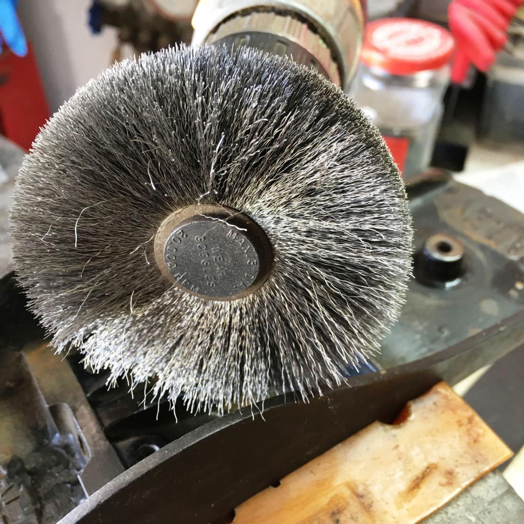I thought that I would do a general tutorial on how to refurbish a hand plane. However, before I start, I would like to thank @HandyDan for providing me with this outstanding Stanley Bailey #5-1/2, Type 11 hand plane. Dan recognized that I didn’t possess a #5-1/2 and graciously offered it to me. So, I thought that as long as I was going to clean the plane up TO USE, that, I would take you folks through my process(es), step by step. Before I start, I understand that some of you are probably familiar with how to do this, but there are others who are not and may like to clean up grandpa’s plane or that garage sale find, but don’t know where to start. I want to see input and alternate methods from the members as I go through this process. I will show how I do this, but it is not the only way to get to the end result. Let’s make this informative for everyone and share ideas. Most of this will be graphic in nature with very little text. I will provide information and clarifications as needed. However, if I don’t cover something in an adequate manner, please ask. I have several core philosophies; the standard …a picture is worth a thousand words, the story is no good without pictures, and there are NO stupid questions. I will break this up into stages. First, I don’t know how much continuous time I will have to complete the project, and it allows for discussions and Q & A between stages. So, I’m going to start out with a general overview of the plane itself. Understand that, this plane is a type 11. This dates it to 1910-1918, so it is about 100 years old. Whoever had and used this plane took very good care of it. There is evidence that the plane iron was properly flattened on the back side, nothing was rusted solid, the wood was dinged but nothing was broken. However, the plane was in a “crusty” condition. (Side note: I apologize for the quality of the photos. They are taken with my iPhone SE as I go through the process. They are not the best quality...sorry.) Here is what the plane looks like before anything is done to it: The next few pictures are of the individual subsystems as the plane was disassembled. Why so many pictures, you ask? Well when it is all done you will be able to go back and compare the before and after results. How to Refurbish a Hand Plane, Stage II Now that it is disassembled it is time to eliminate as much rust as possible. There are many ways to do this but here is what I did. First step is a good wire brushing of all the parts to remove as much loose scale and dirt as possible. I used a wire wheel on a bench grinder to de-rust the hardware, and the components. Since the sole is a corrugated one, I used a softer, drill mounted wire wheel to get into the grooves. Now comes the messy part. All of the major components will go into an electrolysis conversion bath. There is lots of information on how to do this so I won’t go into details. However, here is my set-up and process. Here is the key component. You don’t need an awful lot of the Washing Soda added to the water to get good results. This shows how the cap iron, plane iron, frog, and lever cap are suspended. Here is the nastiness that is the result of the process. All of that red scummy foam is the rust lifted off of the metal components. The next thing was the body of the plane. Unfortunately, I did not get a photo of it in the bath. The #5’s don’t fit completely into the water, so there is about four inches that sticks above the water. I just do one side and then flip the body around and do the other half. After the parts come out of the bath, they are washed with clear water, and then dried. If I don’t have a chance to get to the parts right away I treat them with Boeshield T-9 to keep the surface rust from starting. When I finally get to the parts, they are wiped down with Mineral Spirits. They are then buffed on a pleated wheel with white rouge. I follow up with a loose linen wheel and the same white rouge. This usually gets the last of the crud off of the surface and puts a decent polish to the metal. Not everyone has a buffing wheel set-up, but, again, there are several ways to “skin the cat”. You can use something similar in a hand held drill or resort to elbow grease and handwork. The main issue here is to get rid of the deep down rust in any pits in the metal. Here are the parts de-rusted, buffed and ready to go. Once I am satisfied with the degree of polish, the part gets a good coat of Johnson’s Paste Wax. While I am buffing out the metal parts I, also, buff out the brass on the same buffing wheels. Remember those black handle nuts and the adjustment wheel. Well this is what they now look like. (Disclosure for the adjustment wheel a Dremel Tool is our friend. Wire wheels and little, tiny, itsy bitsy buffs and felt bobs) Once the brass is polished out you can either coat them with the Johnson’s Past Wax, or for a more permanent shine you can seal them with spray lacquer.