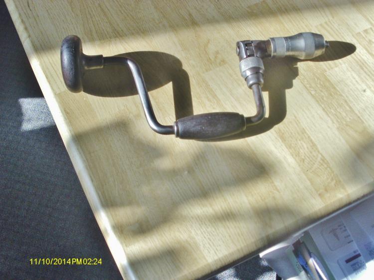 Remember this brace from a Moving Day sale? The one with the fancy wood for it's handles? Well, I got after it with the drill press mounted wire brushes, and a good wipe down with some Neverdull pads. Turns out this little 8" brace is at least 100 years old. A Stanley Rule & level Co. of New Britain CONN USA on the chuck. There is a "VICTOR" stamped into the arm. On the other side from that stamping......No.935 8in Ratchet parts work like new. The wood handles are Rosewood. Apparently, this was sold as a "Victor" model, about 1907 to 1917, or so. Might need to find some springs for the chuck? Or did it even have any? Wood parts are crack free, too. Not too bad for $5?