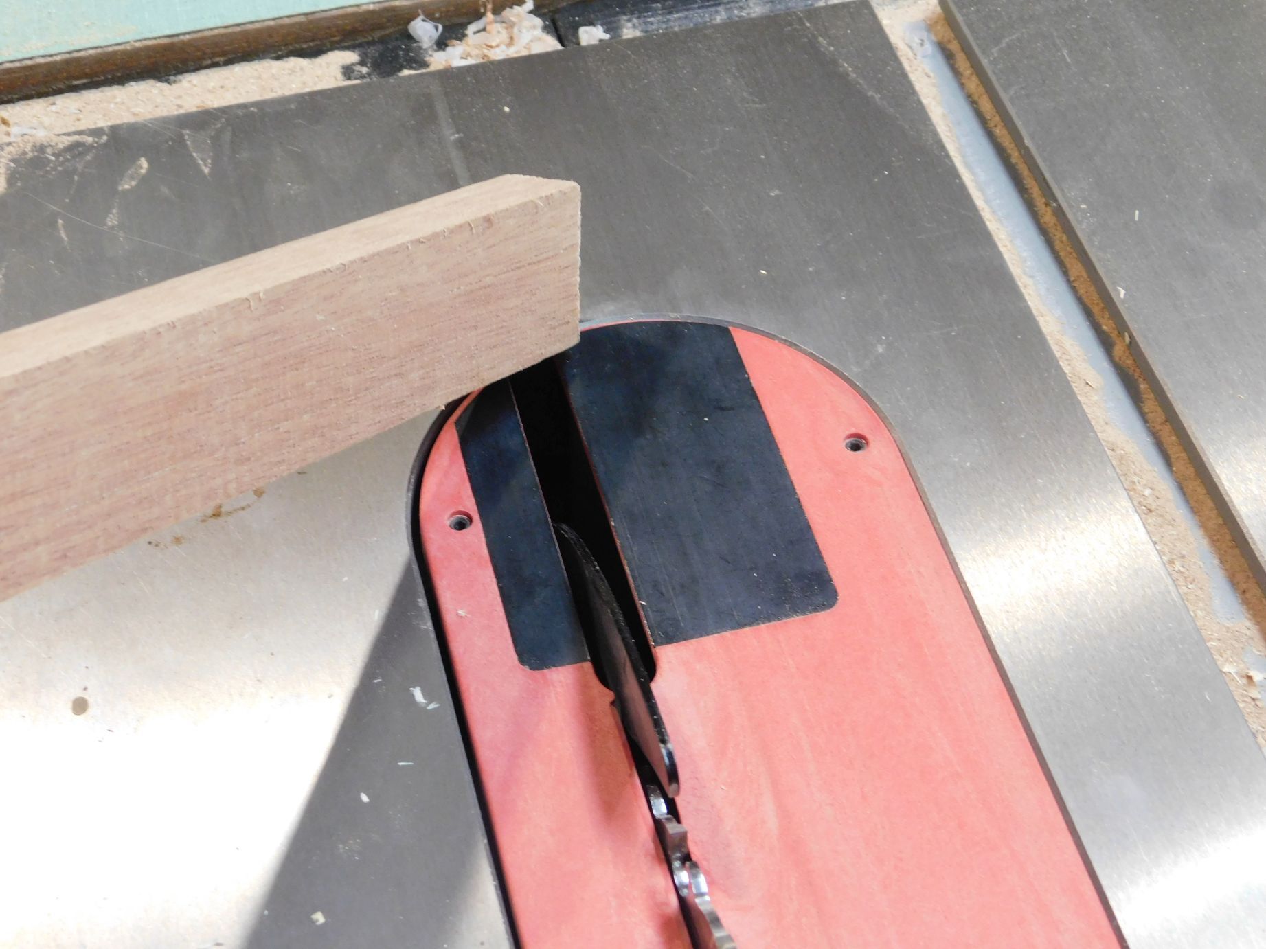 The throat plate on my table saw is unsupported on the end next to the blade opening, and flexes down when I'm cutting narrow strips. The strips often catch on the table lip which had been a nagging and dangerous problem since I bought the saw. Today I set out to either fix that problem or put the table saw on facebook market to to get rid of it. There is a blade housing edge below this area. I measured how thick it was, how far below the table surface it was, and how thick the throat plate was at the spot. I cut a slot the bottom end of a 1" wood dowel to slip over the blade housing, and stood it up to support the throat plate. I got lucky on my first try and for now will be keeping this saw. Wish I'd gotten to this 10 year ago though. 4D -