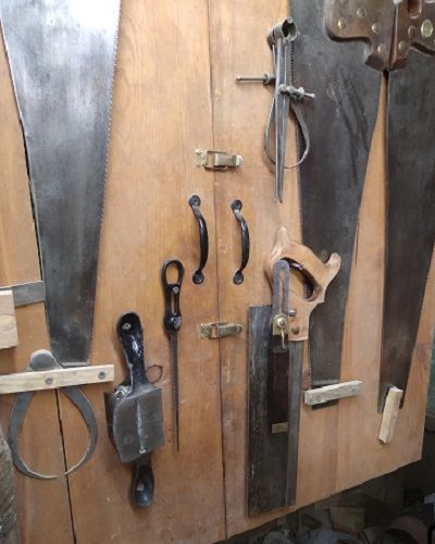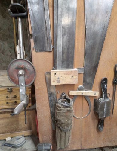 Was down in the shop, to take a few photos...and took a few "extra" ones.. Center is a bit busy... Lower half of the Left door..and looked up a bit.. Just a few saws...drill is a Goodell Pratt...with 3 jaws, more for twist drill bits.. What I was down there for? Seems another site was asking about English made Stanley planes... Figured I could show them my #4c made in England..... Just hanging around...