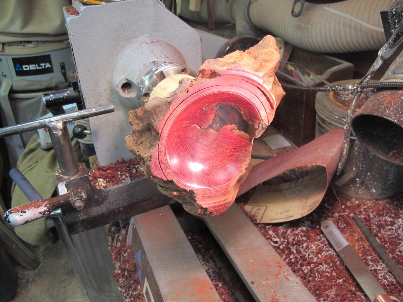 Lovely spring day here in south central PA. My grandmother would have called this "the robin snow" Our Patriot Turners- Not too much happening from our turners this week. @Gerald did post about some of his sales on a different forum in answer to questions about craft shows- What’s Coming Up- From "Meet The Woodturner"- A two day event featuring quite a list of presenters and a wide variety of topics. Click on the above image for the link to the home page and associated information. From Ruth Niles- Click on the above image for the link to registration. For The Newbies- Turning can be like dancing- there are lots of subtle moves that makes it an enjoyable pastime. This video from Kent Weakley demonstrates body movements that can really improve your turning abilities. Cap'n Eddie has a nice little video with a shop tip on protecting your lathe ways. Simple device and easily made- Our shops are almost always in a state of flux. New equipment, saying goodbye to old stuff and changes in interest can all lead to rearrangements. Some of you may be lucky enough to have local friends to compare notes and idea. Others need to rly of folks like Mike Peace to help with ideas on shop reorganization. Expand Your Horizons- Lyle shows shaping and hollowing small objects with Hollowing System and laser measuring. Richard Raffan posted a couple of really nice turned box videos. Both are cross grained turnings. The second video shows making a suction fit lid. New Turning Items- The folks at Woodturners Wonders have a new lamp available. Check it out at- https://woodturnerswonders.com/products/nebula-led-lamp Everything Else- Rick Turns list of YouTube woodturning videos from last week- You may remember from last week, I was trying to figure out what to do with that piece of Manzanita. Gerald suggested carving it instead of turning. I seriously considered that, however, that would have required the purchase of new realm of tools/equipment. As I have already spent my allowance on a new laser engraver, turning it seemed to be the least expensive option. The piece had 3 nubs on the most flat side (circled) which seemed to say "these will be my feet". That meant some sort of mounting had to be made, on this side, for chucking the piece. The stumper was that the opposite side was anything but flat! Using scraps under what would become the top, and hot melt glue, the piece was fastened to my very old shop made chuck; making sure the 3 nub feet were at a level plane. Various length posts added to hold the piece while spinning. And some additional safety taping. Turned a recess. I wanted to leave as much of the natural shape as possible. If I had cut a dovetail mortice for the main mounting, the chuck would not fit with all of the natural shapes. Made a glue block and a paper joint. Utter failure! Considered just a plain glue joint but recently saw a lot of information on hot glue for mounting. I'm Sold! That stuff really holds!! Re-chucked in the lathe. Fairly well balanced and had no trouble with vibration up to and above 1000 rpms. Ready for sanding on the front. First coat of wipe on gloss poly. After the second coat, I'll see what it looks like. Then remove the glue block, reverse chuck it and finish up the area where the glue block is located. Safe turning