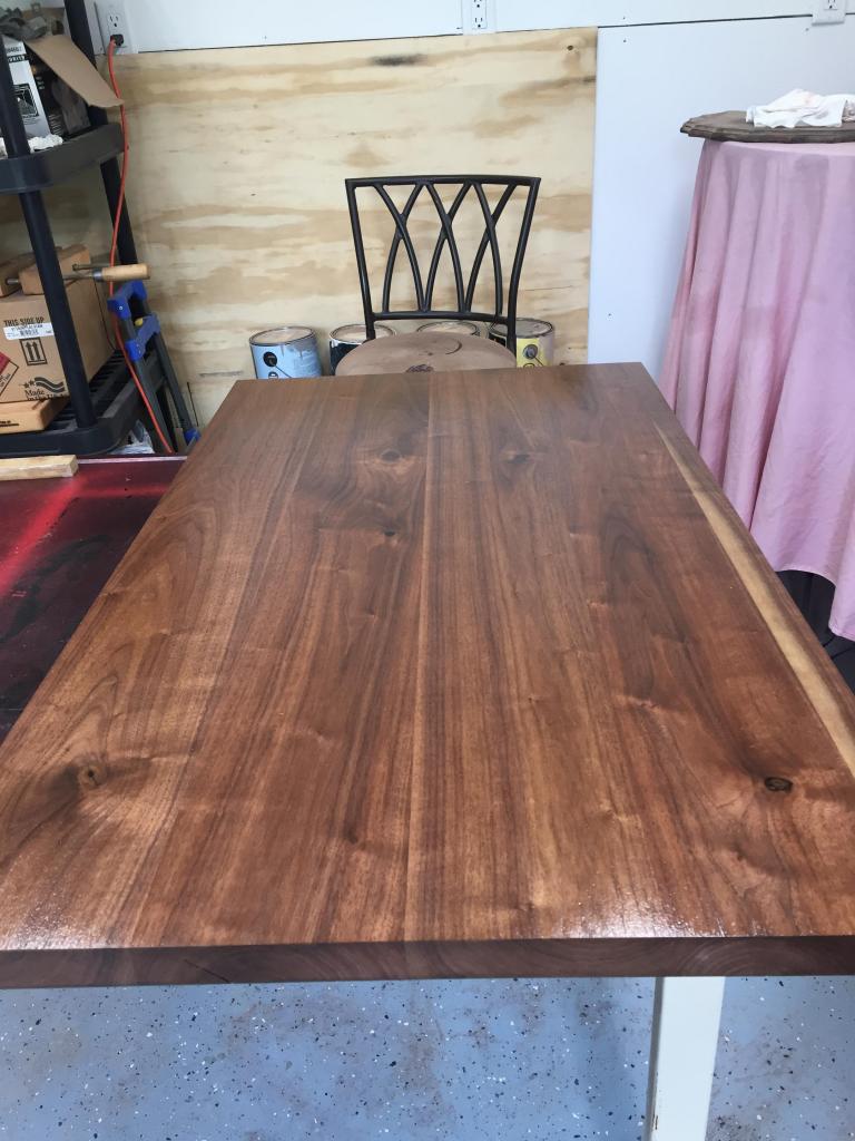 Walnut vanity is coming along today. This will go into our quarter bath. The slides are self closing Blu Motion. Base coat of Watco Teak oil followed up with General Finishes Gel Top Coat. Two more coats to go with a 320 grit sanding between coats. My family loves it. I do too! It will be free standing, or floating about 8" above the floor secured in a corner.