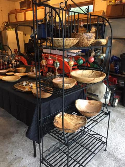 Doing my first craft show in a couple weeks, very small venue, about 10 artisans I believe. Wife and I did a mock set up in the garage this afternoon. This is most of what I will have although there will be a few more bowls. Have no idea what I'm doing. It's my idea the larger black shelf will face the flow of traffic and have my nicest pieces on it. The mirror really sets the tops off IMO. Appreciate any thoughts of opinions.