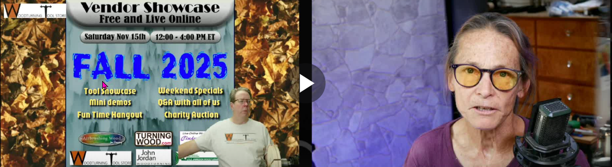 Tomorrow- Our Patriot Turners- @Steve Krumanaker showed us some of his spectacular little bird houses and some other objects! Steve is not going to let Christmas creep up on him this year! Check his post for more images and our member's comments- @Gordon asked our opinion on comparing the Longworth chuck to a vacuum chuck. Several of our members employ the vacuum chuck and Gordon received some great advice. Check out the post and add your ideas- @Headhunter posted some of his bowls in our Ringmaster Sub-forum. Hop over to Tony's post to see where the idea for the design originated and the species used- From our "What's Off" an example of waste not - want not. A little spalted sycamore bowl salvaged from a failed project. What's Coming Up- Click on the images for links to more information and registration What have you been working on in your shop? Share it with all of us at this Friday's free Zoom Sharing Session! September 12th, 2:00 pm Eastern, 18:00 UTC September 19 through September 21 2025 For The Newbies- Tomislav Tomasic discusses scraper sharpen and how it can reduce your sanding efforts- So you've started turning bowls but you want to make them more aesthetic looking? Mike Peace has some tips- Expand Your Horizons- Alan Stratton is back! I've followed Alan for years and really enjoy his projects. Of course I'm a "jig junky" and Alan loves to make jigs!! @Headhunter uses a Ringmaster to make his bowls from a board. In this video, Alan puts his own spin (see what I did there ) on doing one. Tim Yoder showed us how he uses a "story stick" in a short video, last week. This week he gives us a look at what the overall project was and an insight into making wood live on. Woodturning has gone through many changes from the spring pole lathe to carbide tools. But are we ready to embrace "AI"?? Check out what Tomislav thinks- Turning Time With Easy Wood Tools- Lots of Easy Wood Tools demonstrations happening in the near future! https://www.mmwtc.org/ https://www.woodcraft.com/pages/store/appleton https://okstatefair.com/ Last week we posted the short video of Carl Jacobson with the Joyner Offset Jig. This is the step by step setup tutorial. See how the Easy Wood Tools products compliment the use of the jig. @Jordan Martindale New Turning Items- A couple of sales on turning equipment- https://longworthchuck.com/index.php?route=product/category&path=30 Click on the below image for the link to the sale Everything Else- A video series that will help you appreciate your lathe when making a bowl- https://www.finewoodworking.com/2017/11/02/ep-1-finding-the-bowl-within-the-log Safe turning