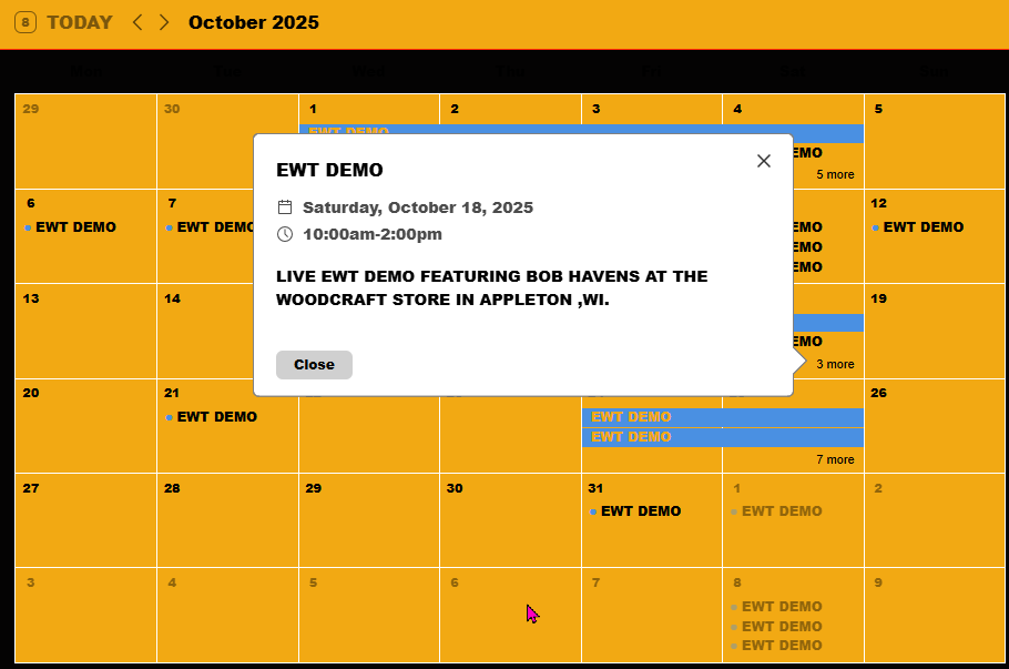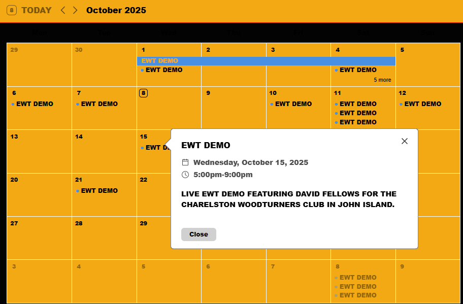 Our Patriot Turners- Member @Steve Krumanaker showed us a neat setup he concocted for easily transporting a lathe for demonstrations! In his post, Steve explains his setup and some of the design features- I was watching @Handfoolery's guitar build on YouTube. He has posted some of his journey on the Patriot woodworking forum. What caught my eye was the equipment he was using to apply finish to the guitar. Finishing is not my strong suit and the spray set up he used looked like it would work well for turned items. https://preval.com/diy-pro-products/preval-sprayer/ The video showing him finishing his guitar- New member @Tay-da-Tay asked us for information oh harvesting a tree with burls. I've never been fortunate enough to have been able to have this experience. Hoping our members/readers can offer some advice. What's Coming Up- If you missed Cindy's Tool Talk, last Friday, she has it posted on line- For The Newbies- Sam Angelo has a video comparing/contrasting the bowl gouge and the spindle gouge. Tomislav Tomasic discusses bowl gouge sharpening- A cool Halloween turning project from Craft Supplies USA- Expand Your Horizons- More skew practice! Richard Raffan turns some spatulas!! Alan Stratton is back posting! In this video he combines segments, Celtic rings and glass hardware. First of the month and the "4-Ways" collaborators are at it again. This month we are missing Tomislav Tomasic. He is recovering from some surgery. The project is a carvers mallet. Turning Time With Easy Wood Tools- Easy Wood Tools demonstrators are in full swing! https://www.mcfeelys.com/ https://www.woodcraft.com/pages/store/tampa https://www.woodcraft.com/pages/store/charlotte https://www.facebook.com/CBWTurners/ https://www.woodcraft.com/pages/store/tulsa https://www.woodcraft.com/pages/store/colorado-springs Turners everywhere are discovering the benefits of Easy Wood Tools products. Tim Yoder- Download.mp4 Carl Jacobson- @Jordan Martindale New Turning Items- Woodturners Wonders has a sale on Axminster products. Click on the image- Robert Sorby has a buffing addition to the sharpening machine- https://robert-sorby.co.uk/product/proedge-buffing-kit/ Everything Else- Safe turning